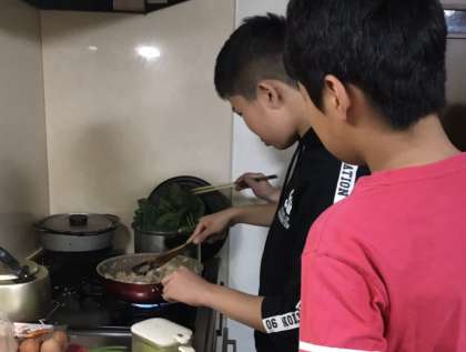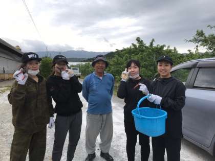 林檎の摘果作業と食事の準備お手伝いです!どの班も積極的に取り組んでいます!