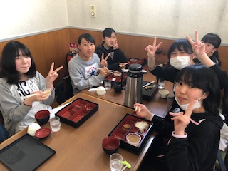 民泊から全員集合し、山都飯田で昼食です!