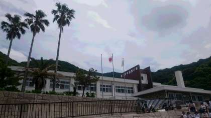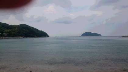 目的地の日高少年自然の家に到着しました。海を見ながら、みんなで昼ごはんを食べています。午後の海での活動への期待が高まります。