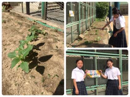 技術室前運動場側の花壇なので、部活動中にボールが入ったりすることもあると思いますが、ひまわりが順調に育っていけるように見守り大切にしてください。皆さんご協力お願いします。