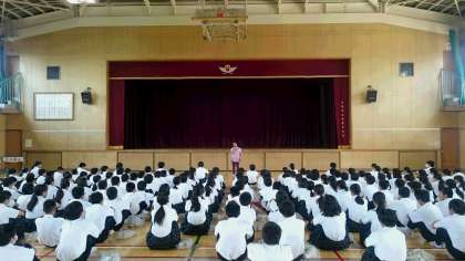今日の学年集会で、下村先生が金子みすゞの詩「こだまでしょうか、いいえだれでも」を紹介してくださいました。悪口を言えば悪口を返したくなるものですが、褒めてあげれば相手も自分を褒めてくれるのが良い集団です。仲間を褒めたり励まし合ったりして、体育大会に向けて団結を高めていきましょう。