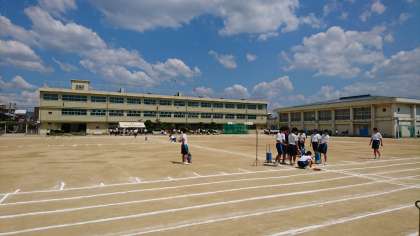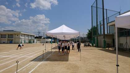 明日の準備をしています。暑いなかですが、頑張って準備しています。明日いい体育大会になればと思います。