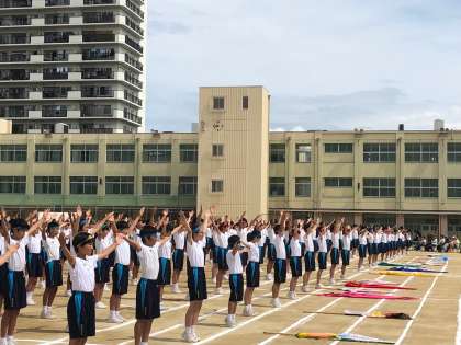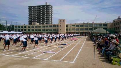 競技の前に体をほぐします。体育委員が先頭に立っての整列も、見事です。
