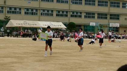 今日の借り物競走の様子です。「歌のうまい人」「名前に「さ」が入る人」「靴がナイキの人」など、奇想天外なお題を頑張ってクリアしました。体育大会を見に来ていただいた保護者の方にも協力いただきました。ありがとうございました。