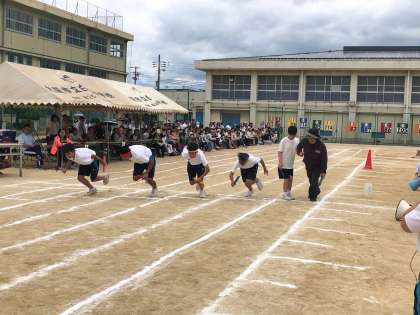 3年生の勝敗を大きく左右した全員リレーでした。みんな一生懸命クラスのために走りました。