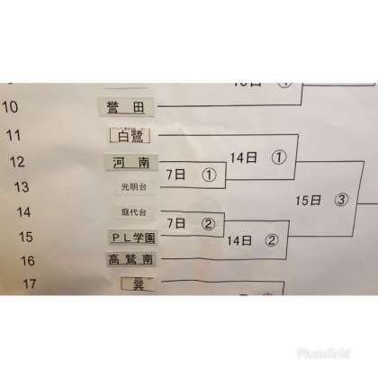 令和元年度 第59回大阪中学校軟式優勝野球大会抽選結果です。写真は1〜3回戦の組み合わせです。