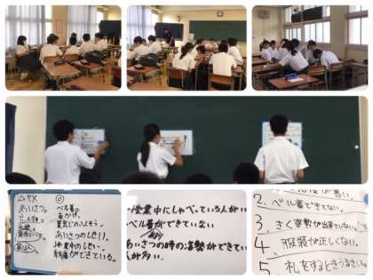 市川先生から「委員会で話し合うだけで良いの?風紀委員の活動で最終的に学年全体がどうなることを目指しているのか?考えてみよう!」と問いかけがありました。