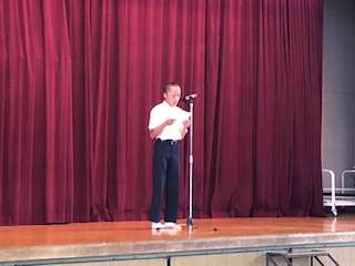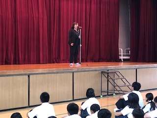 校長先生から1学期を振り返ってお話がありました。浅野先生から夏休みの過ごし方,村松先生から英検についてなど,吉谷先生から8月6日の平和登校日の連絡がありました。そして文化委員会よりパフォーマンス ステージについての連絡がありました。