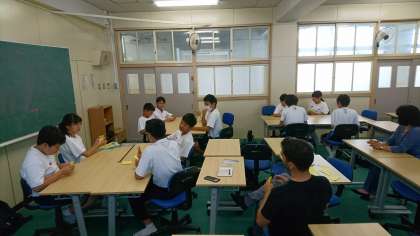 前半は単語カードでカルタをしました。Cーnetのブラン先生に英文を読んでもらい、登場する単語カードを取ります。2回戦は取れた枚数でグループ分けをしました。皆負けても勝っても楽しかったです。
