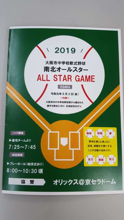 本日、大阪市軟式野球南北オールスターゲーム(in京セラドーム大阪)に向けての南選抜チームの練習会が白鷺中学校で行われました。