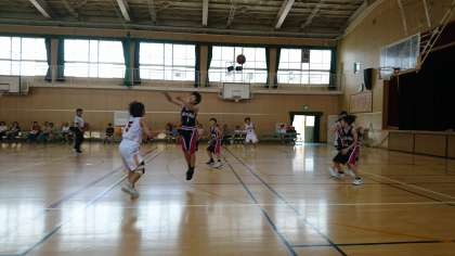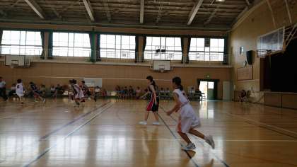 今日はバスケットボール部男女が中野中学校でブロック大会準決勝です。