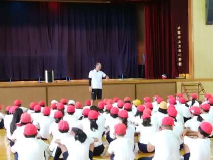 小学校6年生向けに、中学校の保健体育の先生が体育の授業を行います