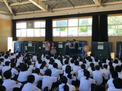 昨日の午後、松竹芸能からチキチキジョニーさんとコンチェルトさんに来ていただき、「笑いを通してコミュニケーション能力を高めよう!」というお話をしていただきました。