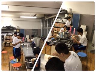 炊き出し訓練は昨年、防災ALTが作ったかまどを使用しました。