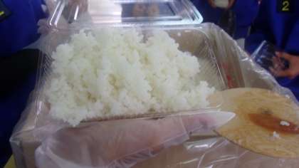 最後に、各教室で非常食のアルファ米を試食して、防災学習を終えました。