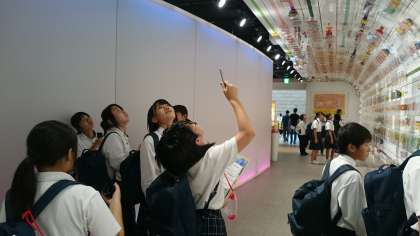 今日の思い出と世界に一つのマイカップヌードルを胸に、カップヌードルミュージアムを後にします。カップヌードルの製法を学習し、他学年とのつながりも深まりました。