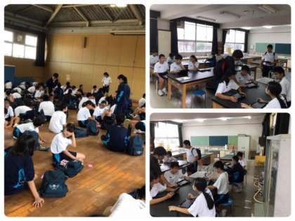 校外学習の感想を書いてまとめをしています。各班のタブレット係もデータの保存作業をしています。
