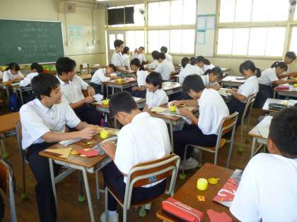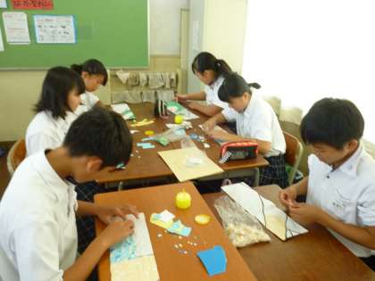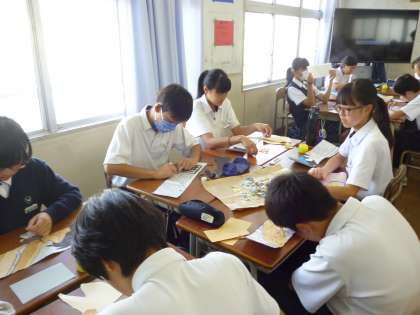 2年生は文化祭で展示をする階段アートの作成に取り組んでいます。どんなものができるかは当日楽しみにしておいてください。