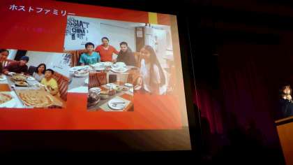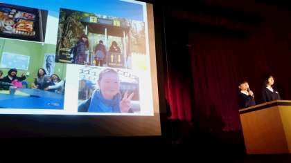 ESSのクイズに続き、東住吉区の事業でニュージーランドに行ってきた一年生二人からの報告がありました。白鷺中が英語モードに染まりました。まもなく生徒有志によるパフォーマンスステージが始まります!