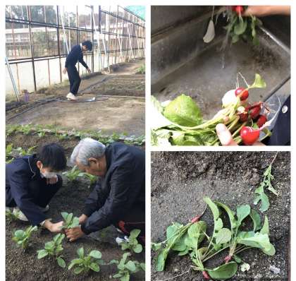 飼育園芸部の朝の活動として、元気アップボランティアの方からはつか大根の間引きの仕方を教えてもらいました。