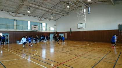本日は女子バスケットボール部は高槻市立第9中学校で府総体2回戦です。相手は豊中第16中です。まもなく試合が始まります。