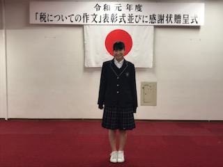 3年生が、公民の夏休みの宿題で取り組んだ「税の作文コンクール」で、富窪さんが見事「公益社団法人東住吉納税協会長賞」を受賞し、昨日表彰式に参加しました。今回のコンクールには、東住吉区の小中学生1000人以上が応募し、そのなかからの受賞者の内の1人となりました。おめでとう。