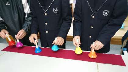 今日、クリスマスツリーを飾りました。その後、ハンドベルの練習をしました。