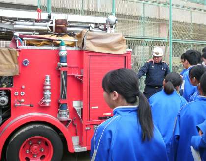 11月1日、2年生は、消防署や地域の防災リーダーの方をお迎えして、防災について学びました。