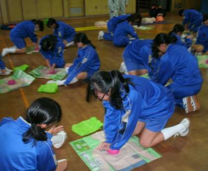 災害時に地域にいることが多い中学生たちが、いろんな場面で活躍できるように訓練を受けました。