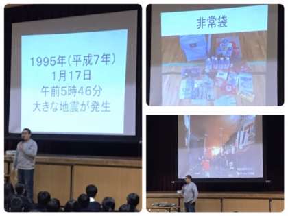 1月10日(金)「語り部KOBE1995」のメンバーとして活動されている柴田大輔さんをお招きして全校生徒対象に防災教育講演会を行いました。