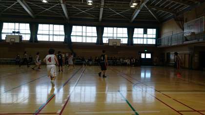 今日の第一試合で長吉西中と対戦しました。結果は54対37で勝ちました。最終試合は第五試合で平野北が相手です。開始予定は2時20分です。