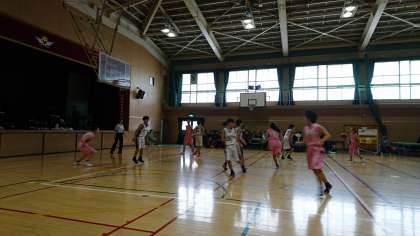 今日第五試合で6ブロック新人大会の優勝決定戦で平野北中相手に54対36で勝利し、夏のブロック大会に続いて見事に優勝しました。