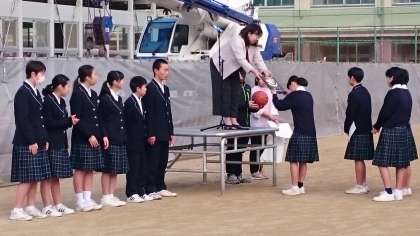 とても寒い中、全校集会が行われました。