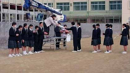 男子バスケットボール部と女子バスケットボール部の表彰がありました。
