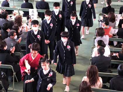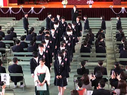 本日、51期生の卒業式を挙行しました。学校休業が重なって予行も行えず、例年より時間を短縮しての実施でしたが、幸い晴天に恵まれました。卒業生の頑張りが伝わり、とても良い式でした。