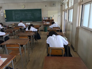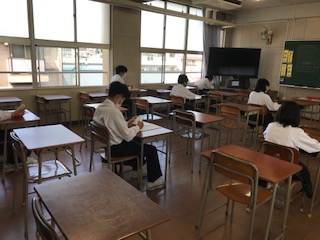 1年生、3回目の登校日が終わりました。少しずつ学校にも慣れてきたようです。写真は今日の分散登校での学級の様子です。