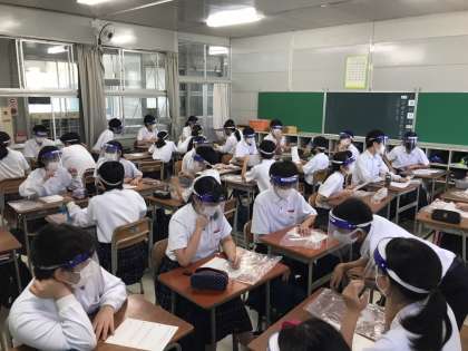 フェイスシールドが全生徒に配布され、一部の授業で活用され始めています。変化に戸惑うことも多かった一週間。心身をゆっくり休め、良い週末を過ごしてください。