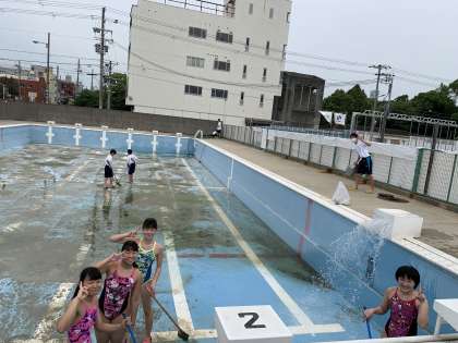 人数が少なく大変でしたが、みんなで一生懸命掃除ができました!来月からやっとプールに入れます。楽しみです。