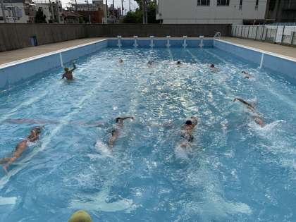 満水になっていなかったので水の中を走ったり、みんなでリレーをしました!
