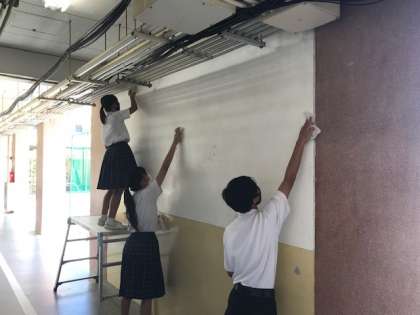 今日は移設作業の第一弾として、各学年の団長の有志16名で移設先の壁の拭き掃除を行いました!