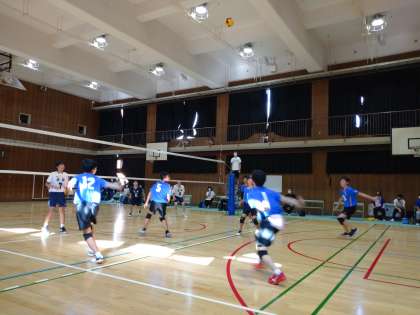 男子バレー部は、決勝トーナメントで摂陽中と戦い、2-0で勝利しました。ここまで来る中で、苦しい時もいっぱいありました。ですが、チーム一つになって、応援してくれる人たちに喜びを与えるプレーができて良かったです。