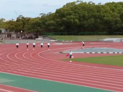 いよいよ最後の種目、団対抗リレーです。学年をまたぎ、一つのバトンをつなぎます。