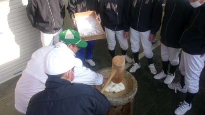 日頃、お世話になっている地域の方々と一緒にお餅をつき、食べながら交流しました。