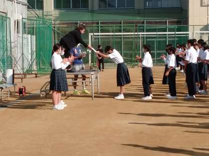 晴天に恵まれ、久しぶりに全校集会を行いました。後期生徒会役員・各クラス委員の認証を行いました。