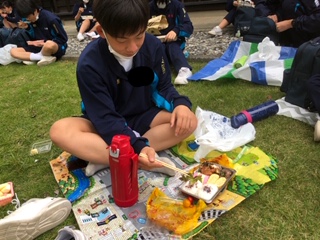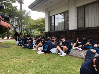 飯田運動公園で昼食をとり、これからラフティングに向かいます!