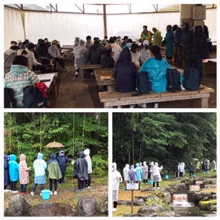 雨は止みませんが、昼から選択別体験に分かれての渓流釣りです。