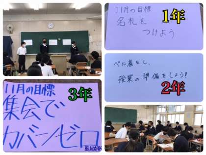 各学年の11月の目標を決めたので皆さん協力お願いします。