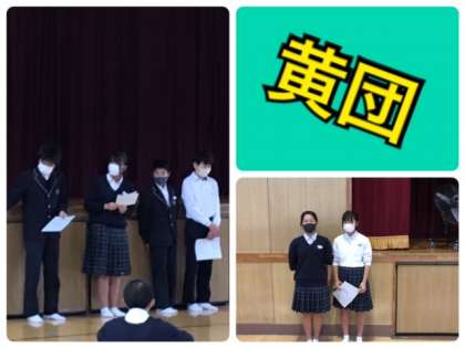 本日の団集会の司会は1年生が担当しました。前回に続き、団体験の感想の発表を行いました。次回は「笑育」の取組発表です。1,2年生から1組ずつ漫才を披露してもらう予定です。楽しみです!!