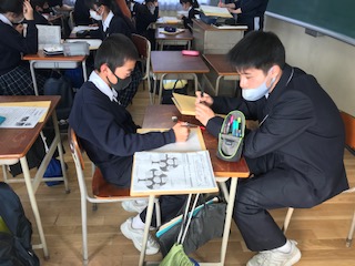 1年生『笑育』のコンビが決まり、いよいよ台本作りに入りました。みんながんばっています。