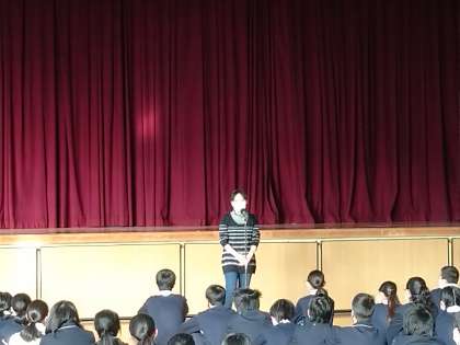 体育館で、学年集会を行いました。浅井先生が、キャリアトライで作成した「ポップコーン・パパ」のCMについて、どのグループも一生懸命取り組んでいてとても良かったです、と褒めてくださいました。